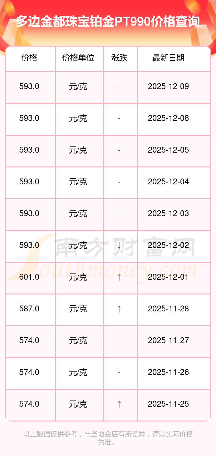 鉑金價格今天多少一克?多邊金都珠寶鉑金PT990價格最新是多少?當下鉑金一克價格詳情如何?