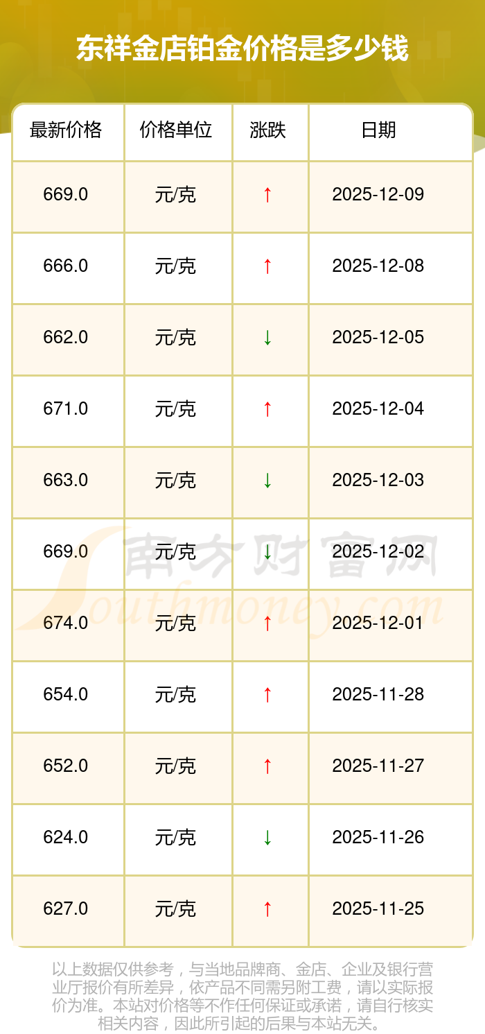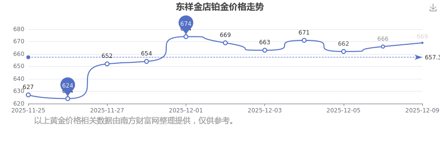 今日東祥金店鉑金價格最新查詢:669.0元/克。