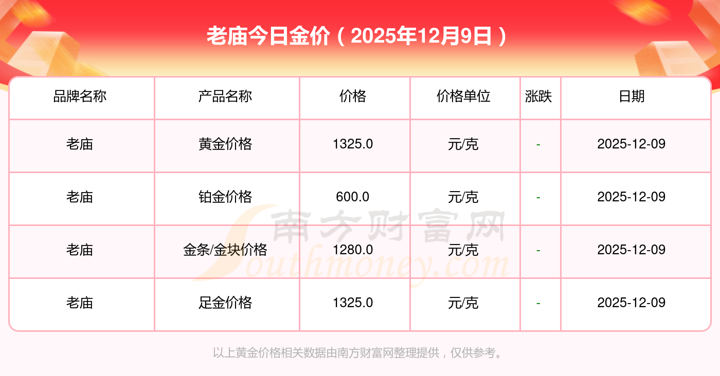 今天是2025年12月9日,周大福、周大福、周大福、周大福、周大福、周大福、周大福、周六福、周六福、周六福、周六福等各大金店品牌黃金價(jià)格最新價(jià)格如下:周大福1328.0元/克、周大福669.0元/克、周大福1328.0元/克、周大福46520.0、周大福19190.0、周大福41960.0、周大福1165.0元/克、周六福1289.0元/克、周六福613.0元/克、周六福613.0元/克、周六福1184.0元/克。