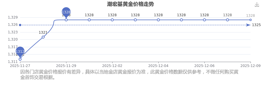 今日黃金售價(jià)多少?現(xiàn)在黃金一克值多少錢呢?平常來說一克黃金的價(jià)格大概是多少?今日潮宏基 黃金價(jià)格,最新確定為1328.0元/克。