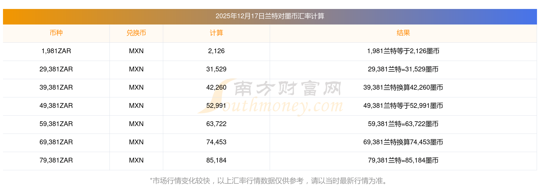 南方財富網為您提供蘭特對墨幣匯率最新價格詳情。