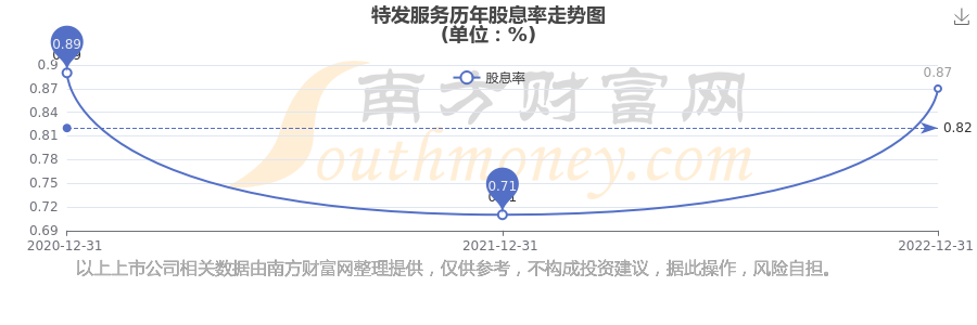 近年特發(fā)服務(wù)年度股息率走勢(shì)如下圖: