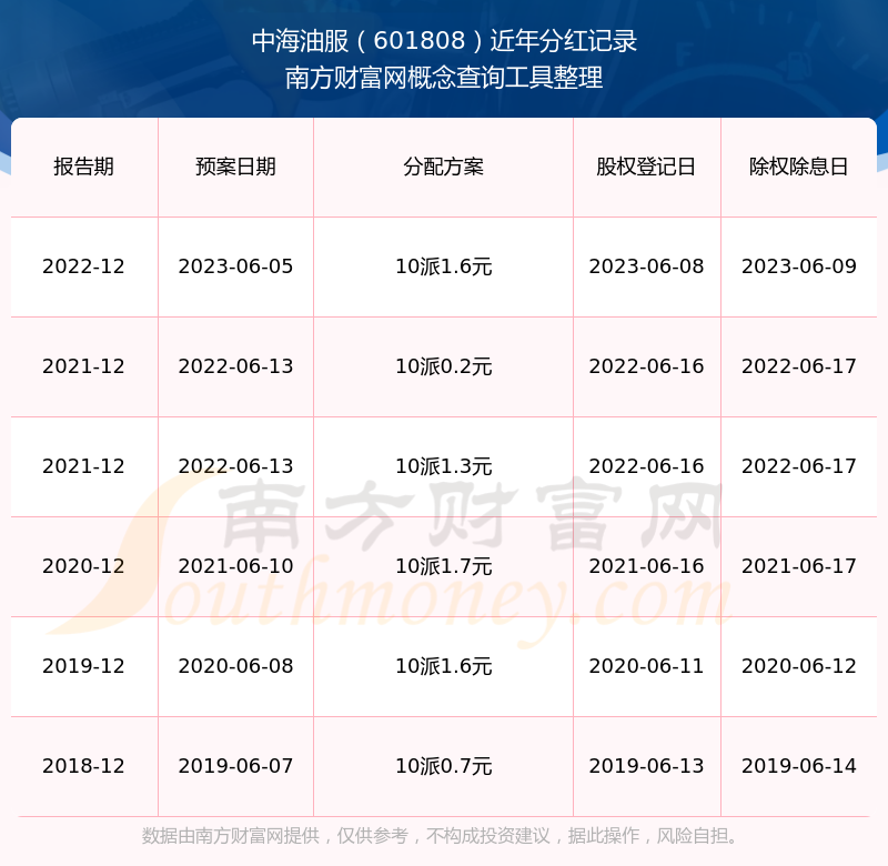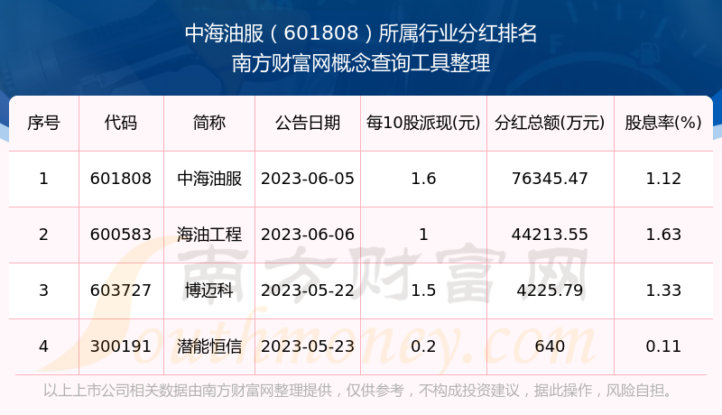 二、中海油服601808行業(yè)分紅排名