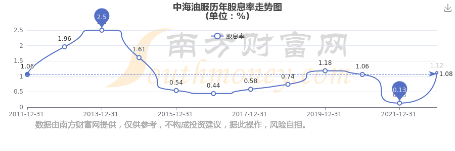 近年中海油服年度股息率走勢(shì)如下圖: