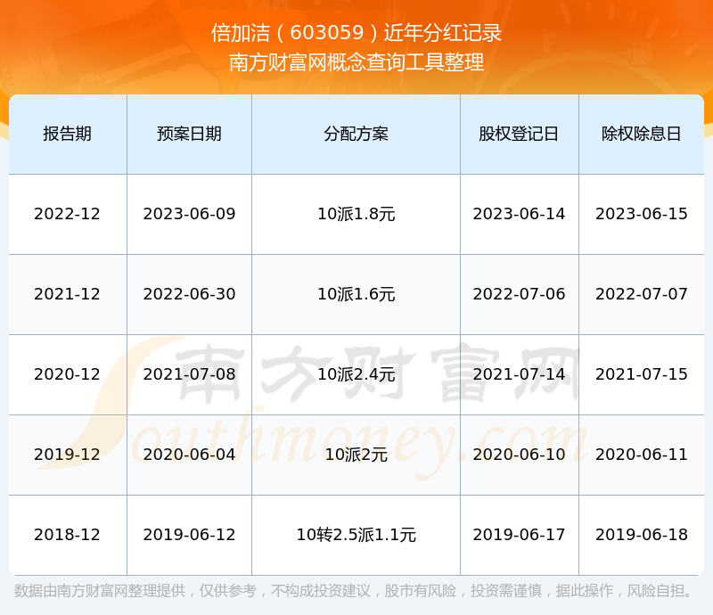 倍加潔歷年分紅派息情況如下表所示: