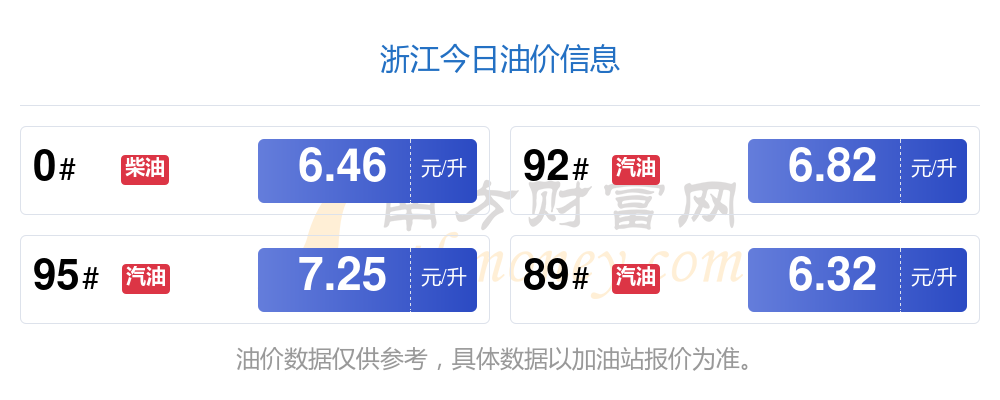 油價(jià)數(shù)據(jù)僅供參考,請(qǐng)以您所在地區(qū)的加油站報(bào)價(jià)為準(zhǔn)。南方財(cái)富網(wǎng)發(fā)布此信息的目的在于傳播更多信息,對(duì)使用該油價(jià)信息所導(dǎo)致的結(jié)果概不承擔(dān)任何責(zé)任。