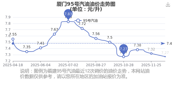 2025年廈門汽油價(jià)格歷史走勢(shì)圖