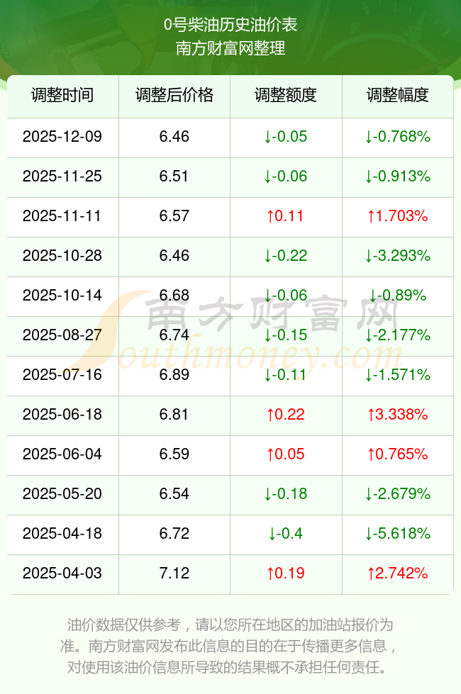 以上數(shù)據(jù)僅供參考,請以您所在地區(qū)的加油站實際售價為準。南方財富網(wǎng)發(fā)布此信息的目的在于傳播更多信息,對使用該油價信息所導(dǎo)致的結(jié)果概不承擔責任。