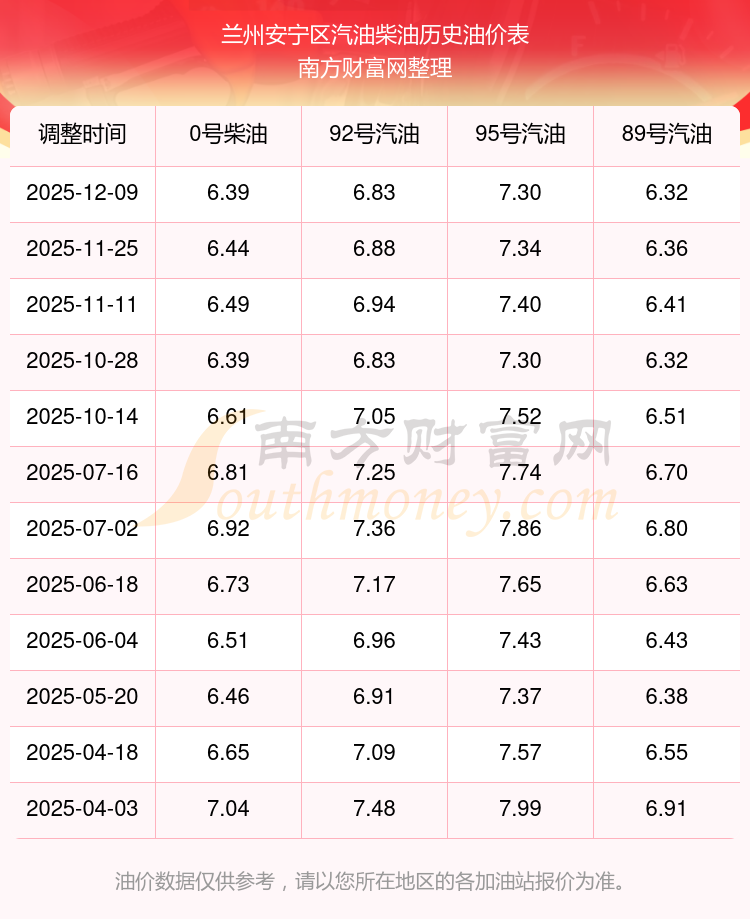 蘭州安寧區(qū)歷史油價(jià)表