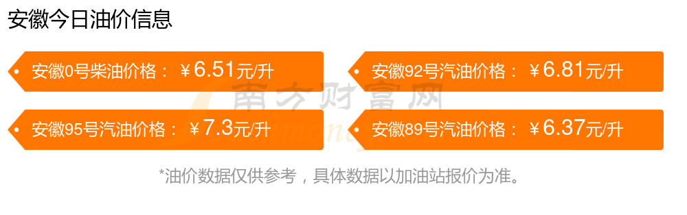 12月18日合肥汽油柴油每升價格(12月9日調整后的價格):92號汽油為6.81元,下調了0.04元,下調幅達0.58%;95號汽油為7.3元,下調了0.05元,下調幅達0.68%;89號汽油為6.37元,下調了0.05元,下調幅達0.78%;0號柴油為6.51元,下調了0.05元,下調幅達0.76%。下一輪油價調整時間12月22日24時,距離現(xiàn)在還有4.64天。