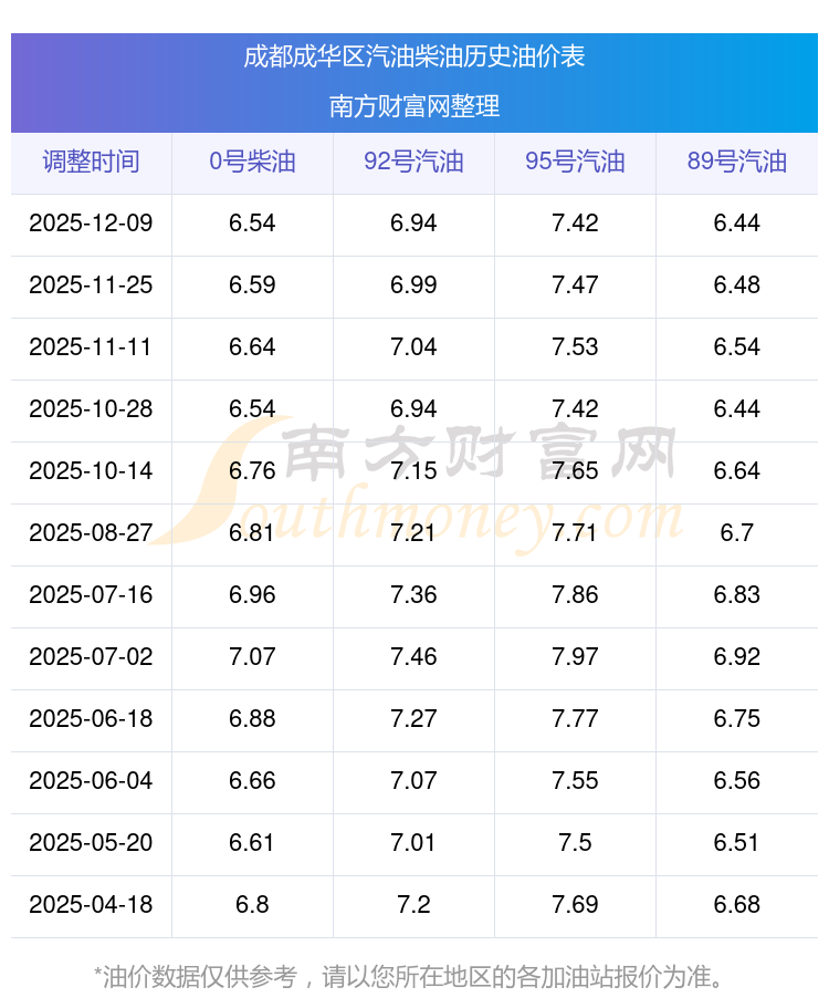 成都成華區(qū)歷史油價表