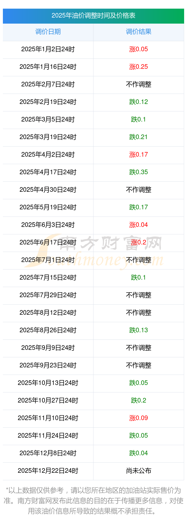 2025年12月18日全國各地汽油價格調(diào)整時間及價格一覽表
