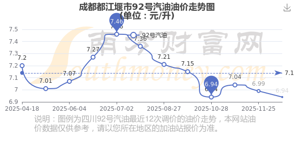 成都都江堰市92號汽油歷史油價(jià)走勢圖