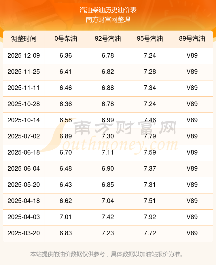 2025年92號汽油價格一覽表