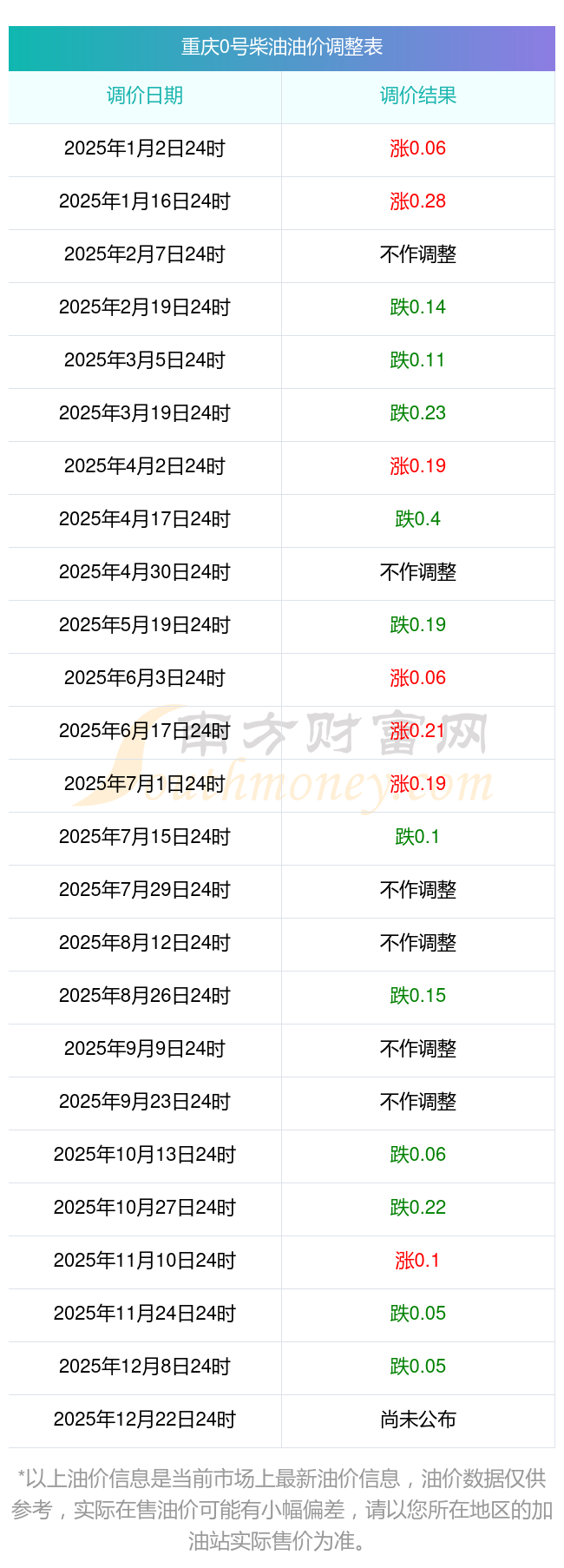 2025年重慶油價(jià)調(diào)整日歷時(shí)間表