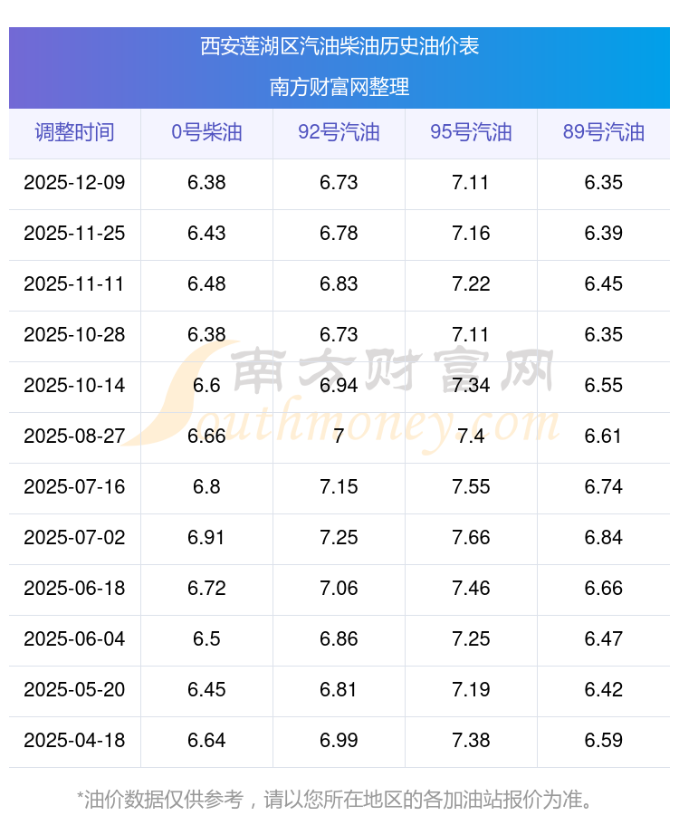 西安蓮湖區(qū)歷史油價(jià)表