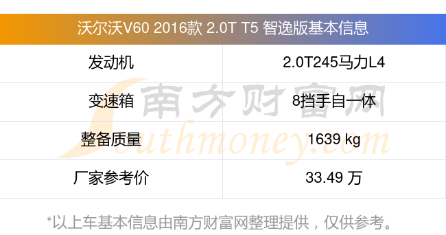 在動(dòng)力上,沃爾沃V60 2016款 2.0T T5 智逸版配備的是一臺(tái)2.0T245馬力L4渦輪增壓發(fā)動(dòng)機(jī),匹配的是8擋手自一體自動(dòng)檔變速箱,燃料形式為汽油,常規(guī)整備質(zhì)量1639kg,廠家參考價(jià)33.49萬(wàn)元。