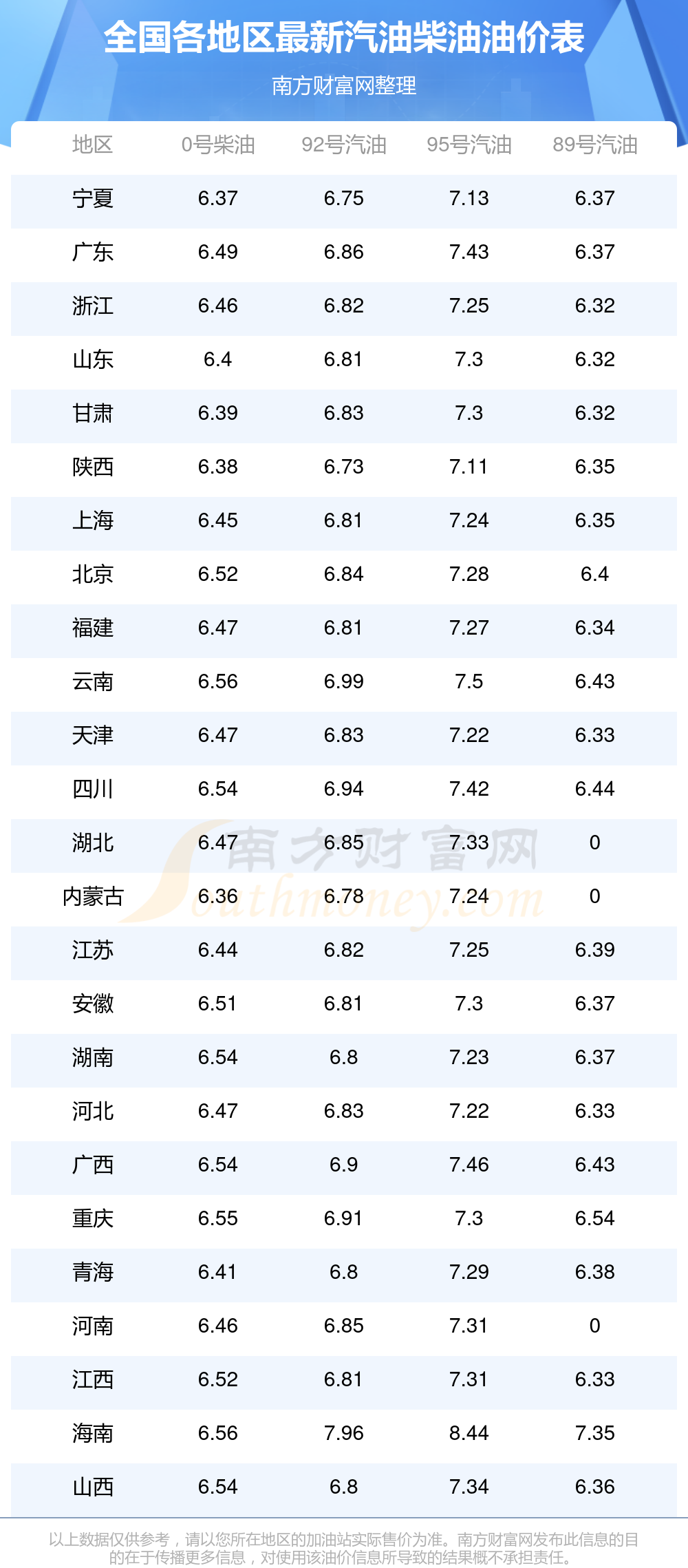 (12月18日)全國(guó)油價(jià)一覽表