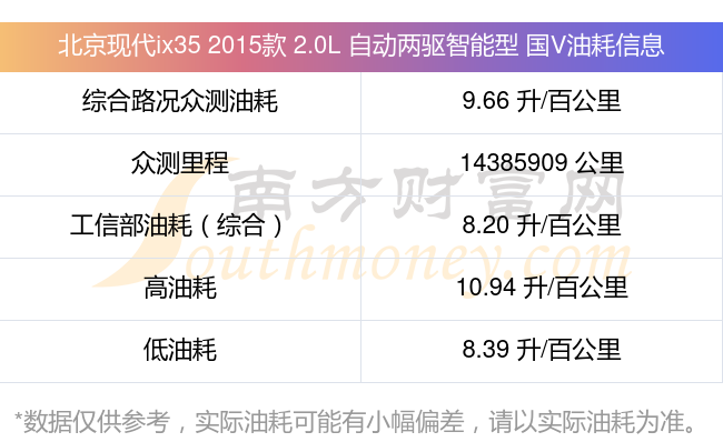 根據(jù)多位車主實(shí)測(cè)得出數(shù)據(jù),該車型低油耗為8.39升/百公里,高油耗為10.94升/百公里,綜合路況眾測(cè)油耗為9.66升/百公里,工信部綜合油耗為8.20升/百公里。