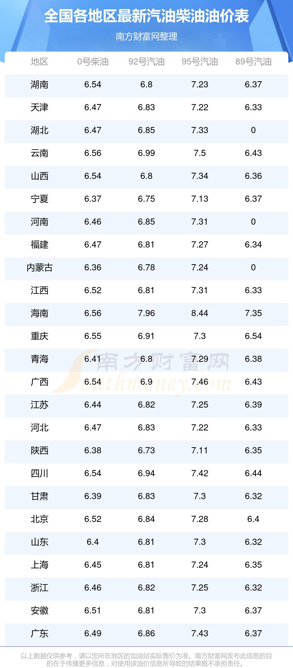 全國95號汽油平均價格為:7元每升,其中,最低為陜西,價格7.11元/升,最高為海南,價格8.44元/升。