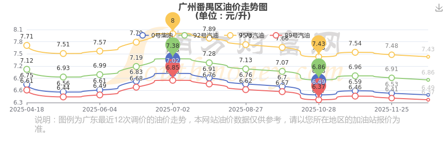 廣州番禺區(qū)12月18日0號柴油歷史油價調(diào)整走勢圖