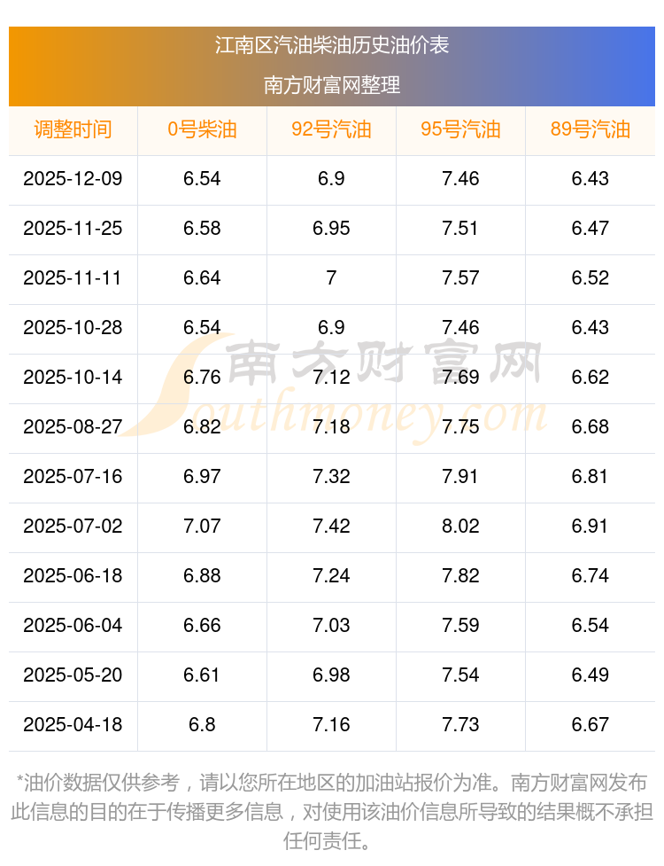 江南區(qū)汽油柴油12月18日的價(jià)格每升多少錢?具體為:92號(hào)汽油為6.9元,下降了0.05元;95號(hào)汽油為7.46元,下降了0.05元;89號(hào)汽油為6.43元,下降了0.04元;0號(hào)柴油為6.54元,下降了0.04元,本輪油價(jià)的調(diào)整時(shí)間為12月9日。