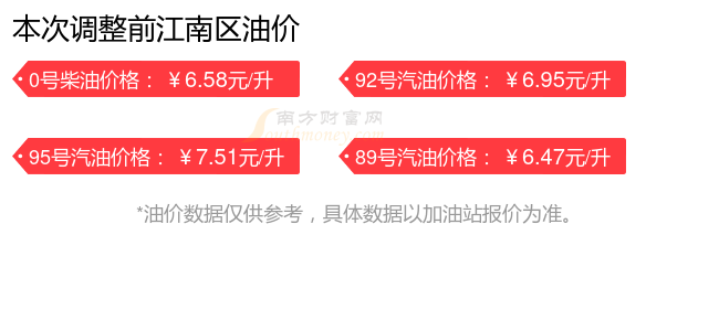 油價(jià)數(shù)據(jù)僅供參考,請(qǐng)以您所在地區(qū)的加油站報(bào)價(jià)為準(zhǔn)。南方財(cái)富網(wǎng)發(fā)布此信息的目的在于傳播更多信息,對(duì)使用該油價(jià)信息所導(dǎo)致的結(jié)果概不承擔(dān)任何責(zé)任。
