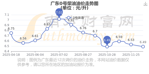 12月18日,廣東0號柴油的價格是6.49元每升,本次的調(diào)整時間為12月9日,對比上次的調(diào)整下調(diào)了0.04元,下調(diào)0.613%,12月22日24時為下一輪油價調(diào)整時間,還有4.54天。