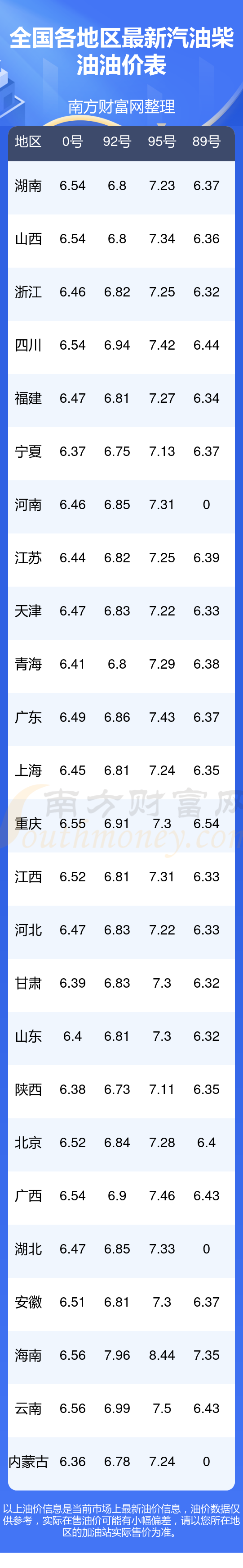 油價(jià)數(shù)據(jù)僅供參考,請以您所在地區(qū)的加油站報(bào)價(jià)為準(zhǔn)。南方財(cái)富網(wǎng)發(fā)布此信息的目的在于傳播更多信息,對使用該油價(jià)信息所導(dǎo)致的結(jié)果概不承擔(dān)任何責(zé)任。