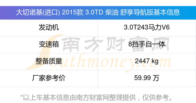 大切諾基(進(jìn)口) 2015款 3.0TD 柴油 舒享導(dǎo)航版動(dòng)力上搭載的是一臺(tái)3.0T243馬力V6渦輪增壓發(fā)動(dòng)機(jī),匹配8擋手自一體自動(dòng)檔變速箱,燃料形式為柴油,常規(guī)整備質(zhì)量2447kg,廠家參考價(jià)59.99萬元。