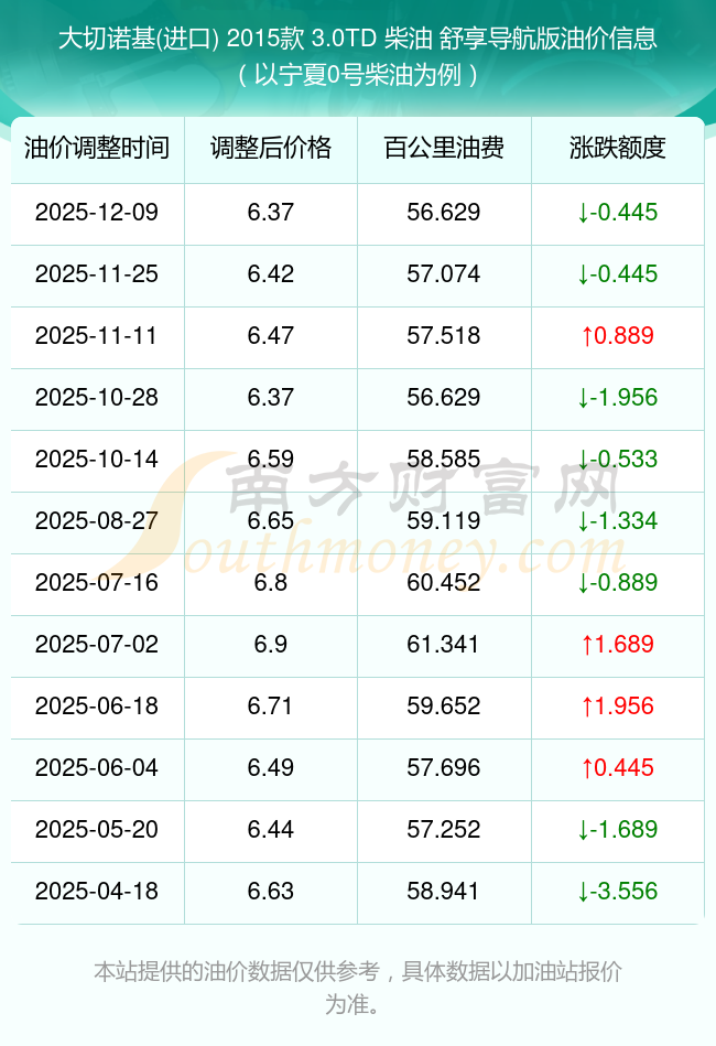 依照12月9日0號(hào)柴油最新調(diào)整價(jià)格6.37元/升來計(jì)算(以寧夏為例),該車型百公里的平均油費(fèi)是56.629元,依照上一輪11月25日調(diào)整價(jià)格6.42元/升來計(jì)算,百公里的平均油費(fèi)是57.074元,對(duì)比上一輪少花0.445元,下一輪的油價(jià)調(diào)整時(shí)間12月22日24時(shí)。