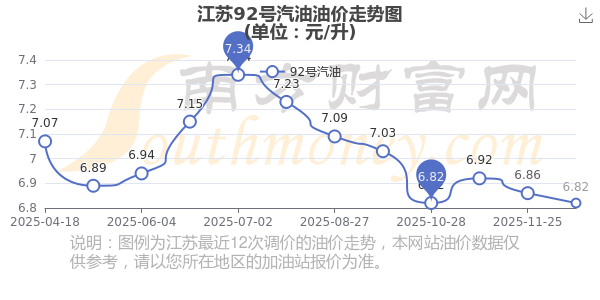 汽油價格調(diào)整最新消息:下一輪油價調(diào)整時間12月22日24時。12月18日江蘇汽油、柴油的價格多少錢一升?本輪油價調(diào)整時間是12月9日,92號汽油6.82元,下跌了0.04元,下跌幅達(dá)0.58%;95號汽油7.25元,下跌了0.05元,下跌幅達(dá)0.69%;89號汽油6.39元,下跌了0.04元,下跌幅達(dá)0.62%;0號柴油6.44元,下跌了0.05元,下跌幅達(dá)0.77%。