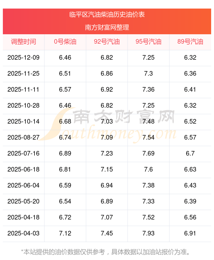 2025年臨平區(qū)油價(jià)調(diào)整時(shí)間表