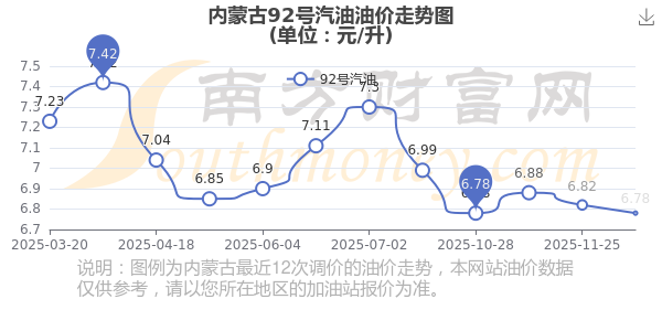 12月18日,內(nèi)蒙古92號(hào)汽油的價(jià)格是6.78元每升,本次的調(diào)整時(shí)間為12月9日,對(duì)比上次的調(diào)整減了0.04元,減0.587%,下次調(diào)整時(shí)間為12月22日24時(shí),還有4.5天。