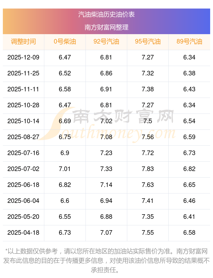 2025年油價(jià)調(diào)價(jià)窗口日期表: