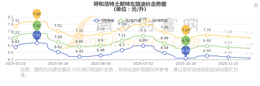 呼和浩特土默特左旗12月18日92號汽油歷史油價調(diào)整走勢圖