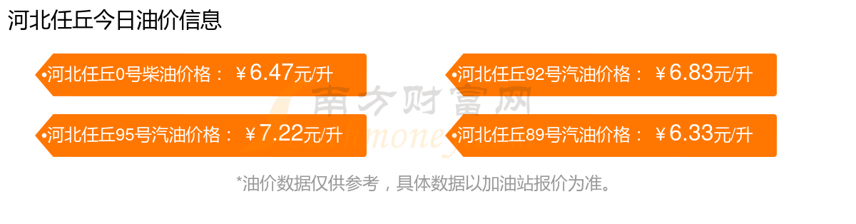 12月18日,河北任丘汽油、柴油每升最新價格為:92號汽油為6.83元,下跌了0.05元;95號汽油為7.22元,下跌了0.04元;89號汽油為6.33元,下跌了0.05元;0號柴油為6.47元,下跌了0.05元,調(diào)整時間為12月9日。