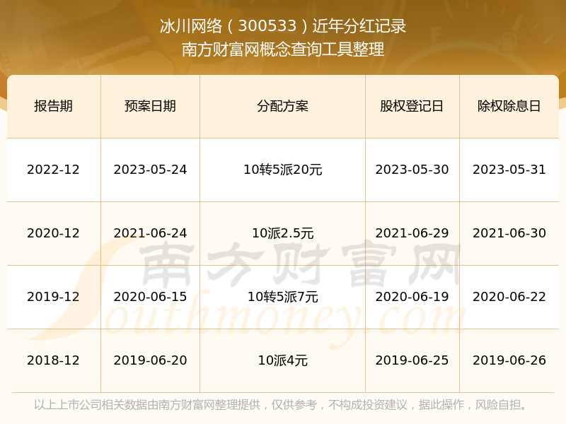 近年冰川網(wǎng)絡(luò)分紅情況如下表所示: