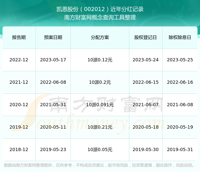 凱恩股份最新一次公布的分紅方案:10派0.12元。