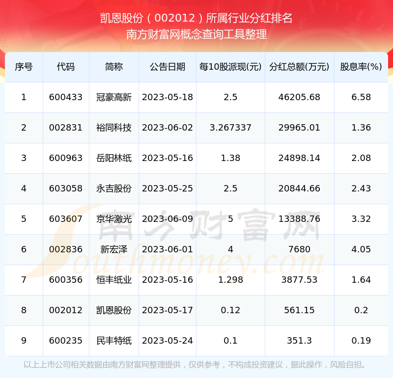 按照南方財(cái)富網(wǎng)趨勢(shì)選股系統(tǒng)統(tǒng)計(jì),凱恩股份所屬行業(yè)為電氣行業(yè),電氣行業(yè)分紅排名情況如下表: