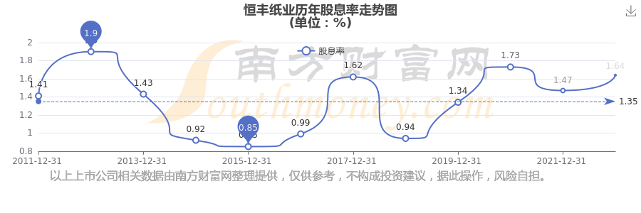 近年恒豐紙業(yè)年度股息率走勢如下圖: