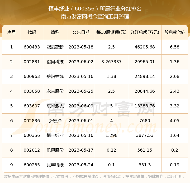 二、恒豐紙業(yè)600356行業(yè)分紅排名