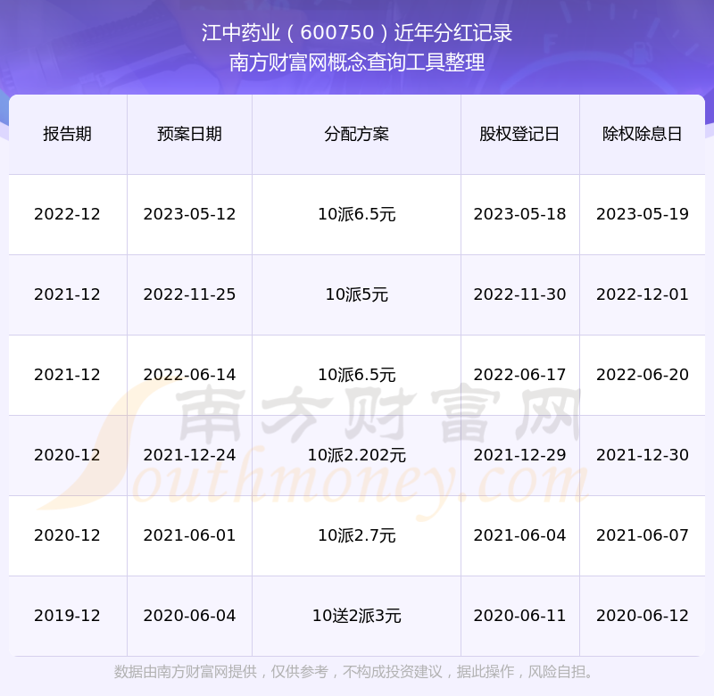 江中藥業(yè)最新一次公布的分紅方案:10派6.5元。