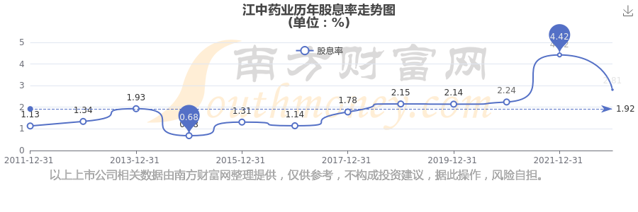 近年江中藥業(yè)年度股息率走勢(shì)如下圖: