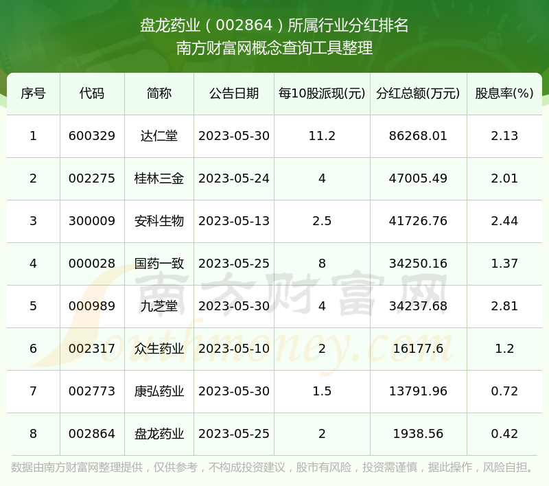 二、盤龍藥業(yè)002864行業(yè)分紅排名