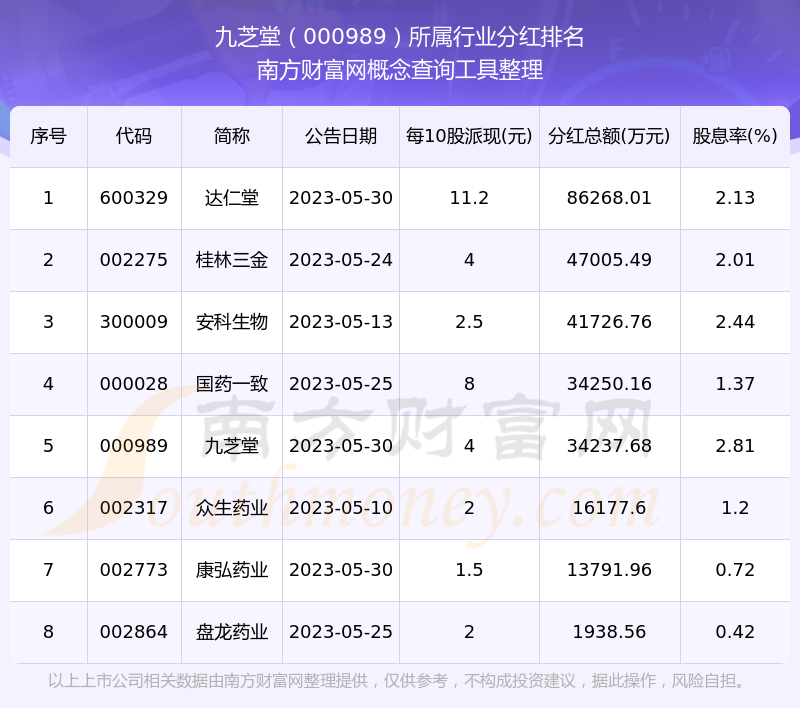 按照南方財(cái)富網(wǎng)趨勢選股系統(tǒng)統(tǒng)計(jì),九芝堂所屬行業(yè)為中成藥行業(yè),中成藥行業(yè)分紅排名情況如下表: