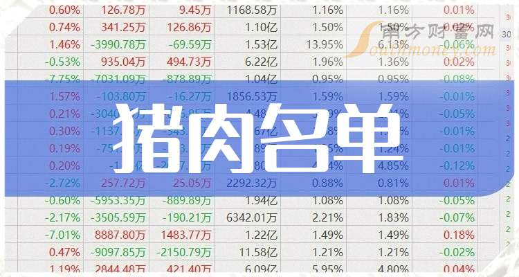 《南方財(cái)富網(wǎng)概念庫》數(shù)據(jù)整理,豬肉龍頭股票為牧原股份、溫氏股份、雙匯發(fā)展。